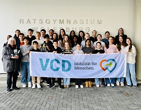 Ratsgymnasiasten sind Preisträger beim Wettbewerb „FahrRad!“ -Auszeichnung in der Klima-Aktionswoche Sich fit halten und dabei etwas für das Klima tun - dieser Devise folgten mehrere Schulklassen und ein Lehrkräfteteam des Ratsgymnasiums in Wolfsburg. Sie alle schwangen sich von März bis August 2025 auf das Rad und legten insgesamt 42.743 km auf ihrem Weg zur Schule und in der Freizeit zurück. Aufgerufen zu dieser Aktion hatte der Verkehrsclub Deutschland (VCD) mit dem Ziel, Heranwachsende für das klimaverträgliche Radfahren zu sensibilisieren. Das Engagement hat sich gelohnt. Von vielen Gruppen aus ganz Deutschland gehört die Klasse 7a zu den diesjährigen Preisträgern der Jugendkampagne FahrRad! Text: VCD, Wi, Ya; Bild: Ya
